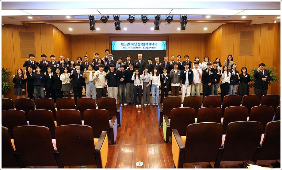 재단법인 행소장학재단(이사장 신일희)은 10월 21일(화) 오후 3시, 계명대 성서캠퍼스 행소박물관 시청각실에서‘2025년도 장학증서 수여식’을 열고 경제적으로 어려움에도 성적이 우수한 학생들에게 장학증서와 장학금을 전달했다.