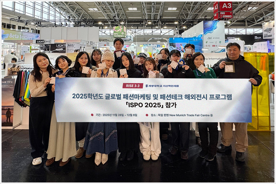 계명대학교 패션마케팅학과가 지난 11월 30일(일)부터 12월 2일(화)까지 독일에서 열린 세계 최대 스포츠·아웃도어 산업 박람회 ‘ISPO 뮌헨 2025’에 지역 섬유·패션 기업과 함께 참가했다. 이번 참여는 글로벌 전시 현장에서 지역 기업 제품이 어떤 반응을 얻는지 확인하고, 학생들이 해외 마케팅 실무를 검증받는 기회가 됐다.