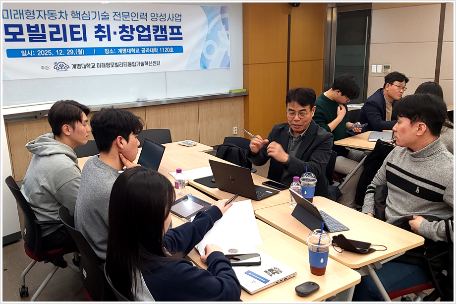 계명대학교가 지난 12월 29일(월) 성서캠퍼스 공과대학에서 ‘미래형자동차 핵심기술 전문인력양성사업’ 참여 대학원생을 대상으로 ‘2025 모빌리티 취·창업 캠프’를 개최했다.